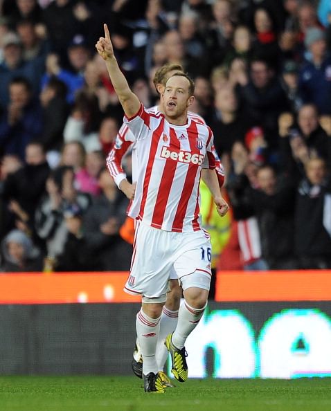 STOKE ON TRENT, ENGLAND – NOVEMBER 10: Charlie Adam of Stoke City celebrates scoring the opening goal during the Barclays Premier League match between Stoke City and Queens Park Rangers at Britannia Stadium on November 10, 2012 in Stoke on Trent, England. (Photo by Chris Brunskill/Getty Images)