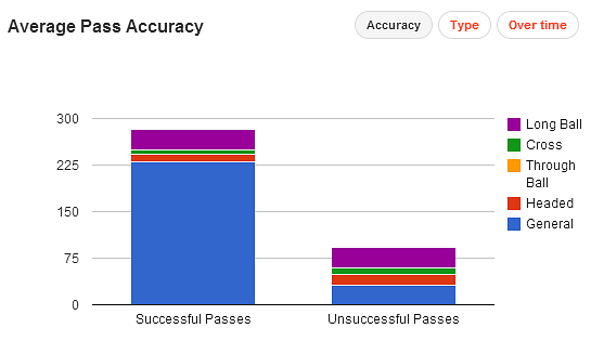 But having completed just 51% of these, thus seeing him complete just 77% of his passes in general, it’s best he keep things short and simple.