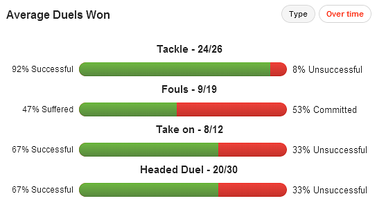 An average of 1.4 fouls conceded per game, however, indicates he can be a bit clumsy at times.