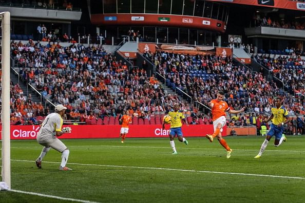 Jefferson Montero had scored for Ecuador as early as the 9th minute. But in the 37th minute, Jordy Clasie sent in a long ball straight down the middle. Robin van Persie ran into the box, controlled the pass with his chest and volleyed it past Ecuador goalkeeper Maximo Banguera before it touched the ground.