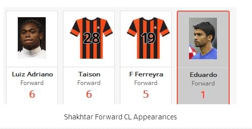 Eduardo has played in just one of Shakhtar’s six Champions League ties this season, making a 16 minute cameo against Real Sociedad.