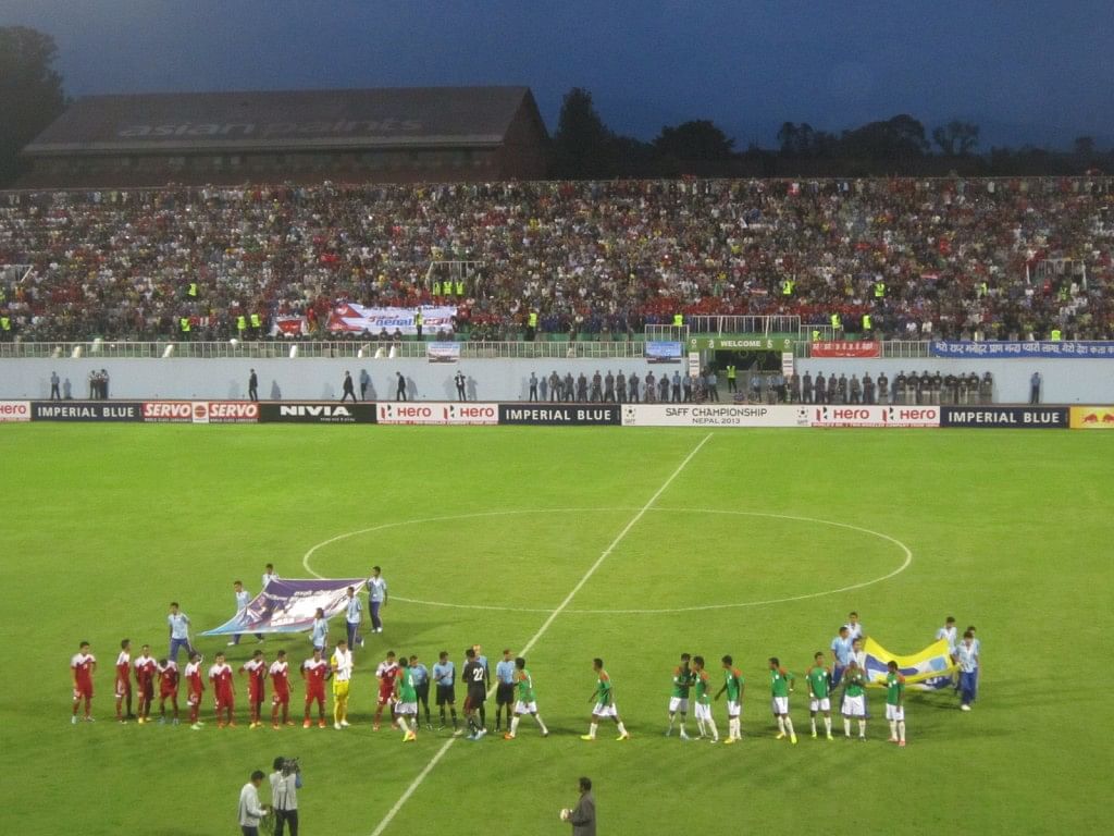 They were already the best supported national team in South Asia and Nepal’s reputation got enhanced after Saturday evening as they defeated Bangladesh 2-0 in the SAFF Championship 2013 opener in front of more than 22,000 passionate fans at Kathmandu’s Dasarath Stadium.
