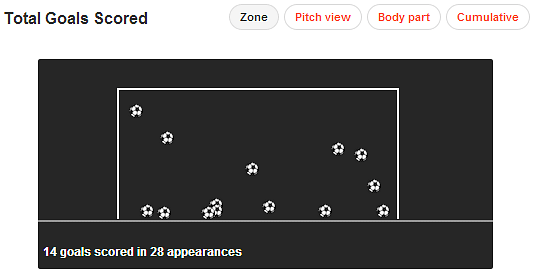 His Performance Score of 51 is the 14th highest at the club, a poor effort for a player who has featured more than any other outfield player (apart from Rio Mavuba). Only Florent Balmont has created more chances (18) than Kalou but to be honest that is to be expected when the Ivorian plays in such an advanced position, the return of just one assist is what is particularly disappointing. In terms of the Premier League, he has created the same amount of chances as Kyle Walker, the league’s 18th most creative player. Furthermore, he has created more than Chelsea’s Oscar (17).