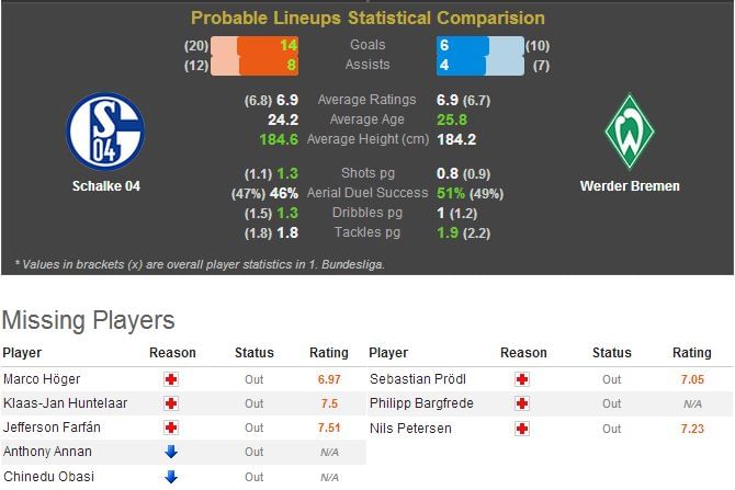 - Schalke have won their last 4 matches against Werder Bremen in all competitions.