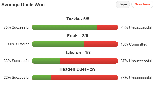 In his eight league games Uchida has completed 10 of his 12 take-ons, showing a confidence to get forward and beat opponents when the opportunity presents itself. He’s also recorded two assists within his six key passes, proving that he has an end product to the more expansive side of his game.