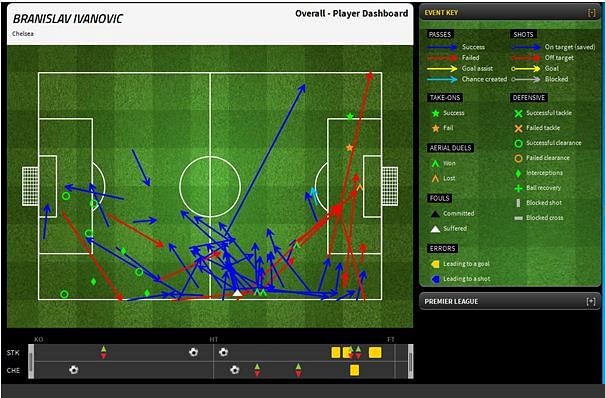 The above graphic depicts Ivanovic’s crosses. It is painfully obvious that this is not his strength, yet we have not addressed this issue. I would merely be repeating myself if I again wrote what I mentioned in the previous article regarding Ivanovic in that position. Is it not good to start Bertrand and Azpilicueta in these kinds of matches?