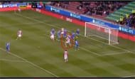 The Chelsea defenders somehow manage to miss the presence of the tallest player on the pitch (6 feet 7 inches) and the ball drops to his feet as no one heads it away or clears it. Crouch scores a double nutmeg to pull Stoke back level.