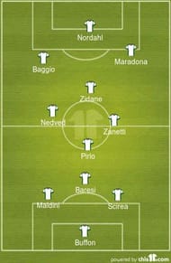 Michel Platini: It was a straight call between Zidane and Platini, and Zizou won out. No other player would have gotten ahead of Platini, but as it stands, he has to make do with a place on the bench in this line up.