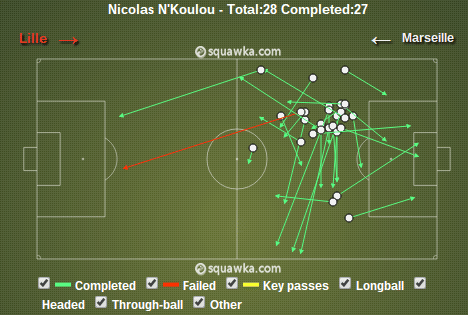 Lastly, the requirement that the modern centre-half be able to pass as well as defend is something which N’Koulou fulfils. His pass completion rate of 89% this season is bettered only by John Terry of Chelsea’s central defenders and indicates that the Cameroon international would slot comfortably into Mourinho’s system at Stamford Bridge. As seen in the graphic below from N’Koulou’s most recent game (against Lille), the defender’s range of passing is fantastic and makes him well suited to joining Chelsea in the upcoming transfer window.