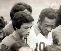 Coach P.K. Banerjee (R) kisses Shyam Thapa