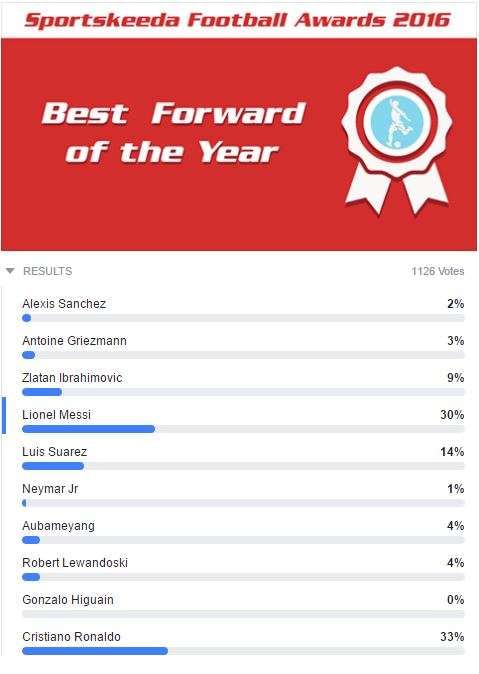 We are nearing the end of 2016 and as the curtains draw on yet another scintillating year of football, we are left with a few tough choices to make, like selecting the Best Forward of the Year 2016. We at Sportskeeda undertook the arduous task of running through all the stats and came up with the list of 10 best forwards of the year to choose from, upon which a polling was done with fans voting for their favourite for the award.