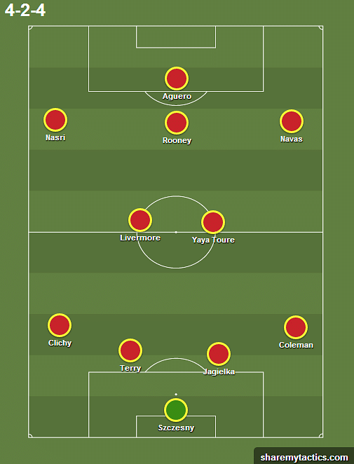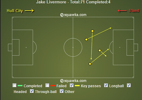 Midfielders: Jesus Navas (182), Yaya Toure (182), Jake Livermore (169), Samir Nasri (283)