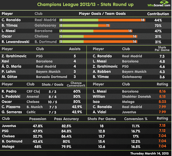 As we head into the final stages of the Champions League, let’s have a look at some stats from the competition so far. For the first time since its start, no English team has reached the quarterfinals. David Beckham is the only Englishman left in the Champions League.