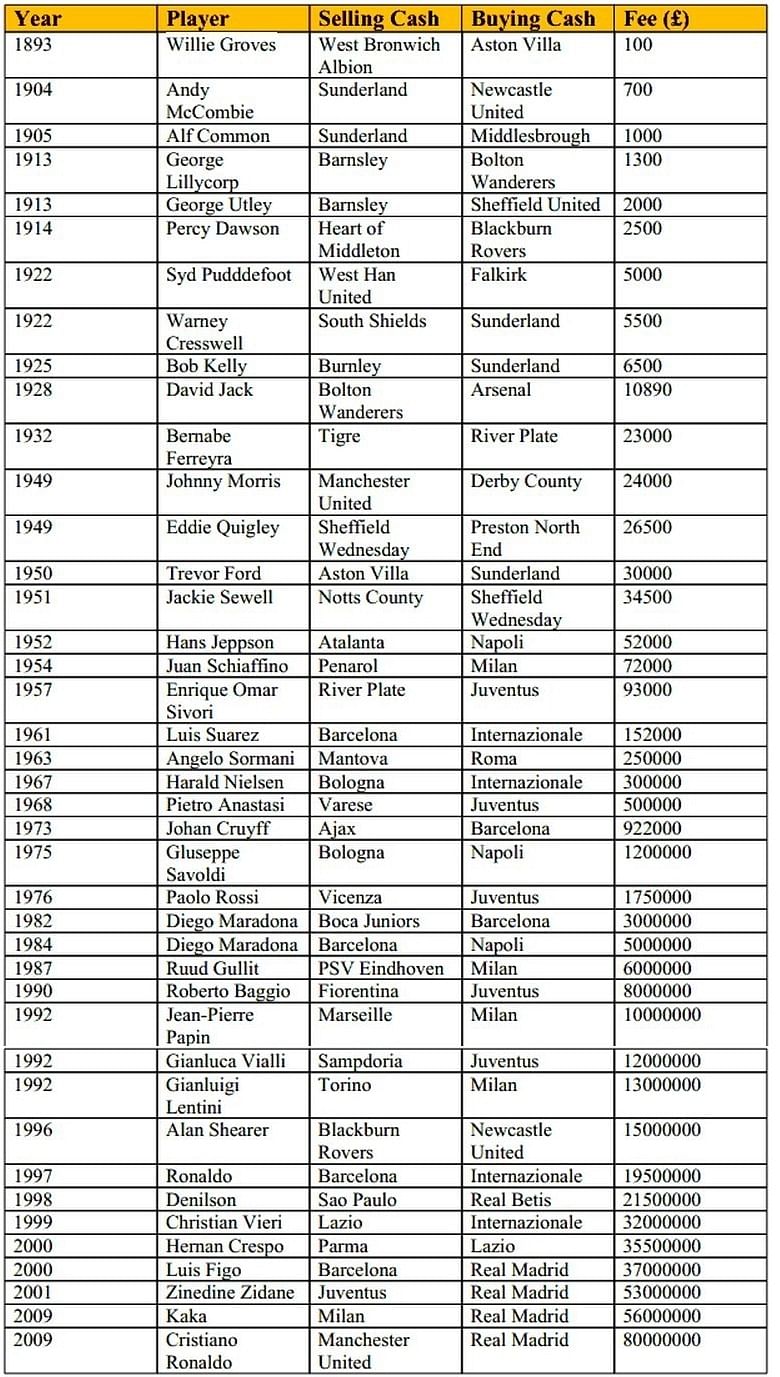 Cristiano Ronaldo was sold to Real Madrid for a world record sum in 2009. Below is the list of the record transfers in football over the years.