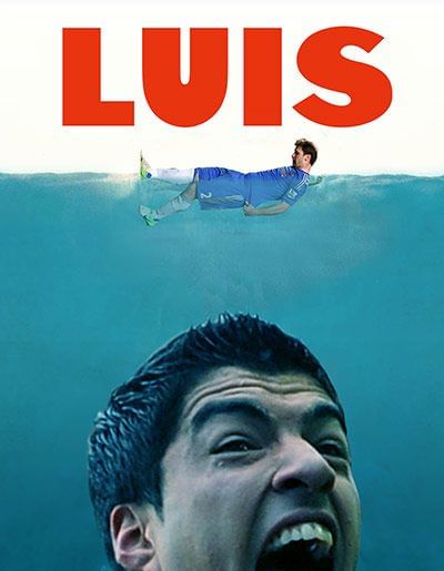 Just for kicks, here are a few photoshopped images depicting Suarez as a shark: