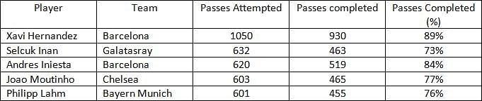 Here is the list of top five players in this year’s Champions League, who have made their passes count with a high percentage of pass completion.