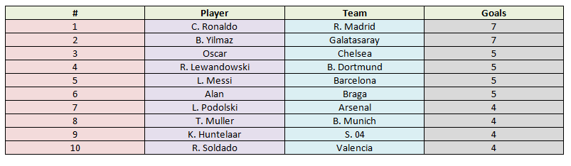 The Champions League resumed back into action last week, with some epic matches and other humiliating defeats. Cristiano Ronaldo faced his former club Manchester United, and scored a brilliant header for Real Madrid. Arsenal’s Lukas Podolski was another player who scored against former club, as the Gunners lost 1-3 to Bayern Munich. Here’s a list of top ten scorers in the Champions league.