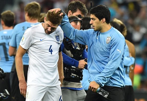 Uruguay striker Luis Suarez, who scored two dramatic goals in the thriller in the match against England, was quick to offer consolation to his Liverpool colleague, Steven Gerrard.