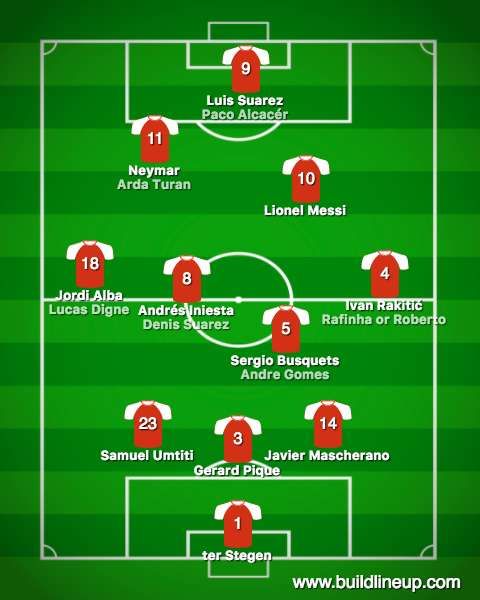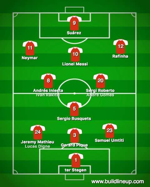 Alba’s pace and stamina are unparalleled in the team and he would be able to boss the left flank, if and only if, he is able to adapt to the role. On the right flank, Rakitic (or Rafinha/Roberto) can allow Leo to drift in which would allow him to make use of the right wing.