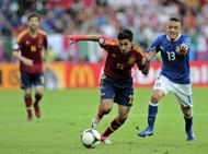 Yesterday, I discussed about the various formations that Spain could experiment with; one of them involved playing Silva and Fabregas in False 9 and False 10 roles. Del Bosque opted for a similar formation, only he did not start with Jesus Navas. Instead, he opted for a reliable three-man center midfield. As you would have realized, that tactic went for a toss as Spain was toothless for most part of the match. No, I am not against Del Bosuqe for not starting with a striker. Given the options ahead of him, playing an extra midfielder for a striker is a sensible thing to do. But I am very much against doing that without deploying a winger.