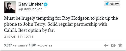 However, Lineker believes that Terry, although unsavoury off the pitch, deserves a recall for his performances on it.