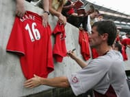 PHILADELPHIA – JULY 27: Roy Keane of Manchester United signs Autographs for fans after a training session at Lincoln Finacial Field on July 27, 2004 in Philadelphia, Pennsylvania.