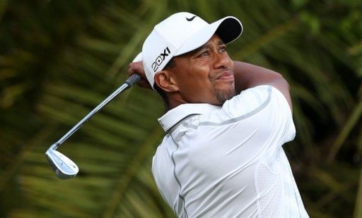 Tiger Woods hits his tee shot on the 15th hole during the third round of the World Golf Championships-Cadillac Championship at the Trump Doral Golf Resort & Spa on March 9, 2013 in Doral, Florida. Woods fired seven birdies, the last of them a 16-footer at the final hole, on his way to seizing a four-stroke lead after 54 holes Saturday at the World Golf Championships Cadillac Championship.