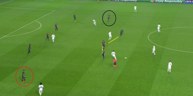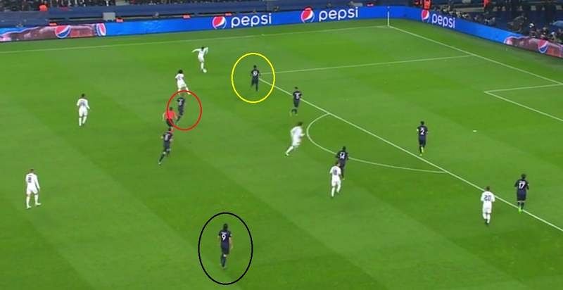 The fullbacks are assisted more by the central midfielders on their corresponding side. In other words, Verratti provides defensive support on the right to Serge Aurier/Van der Wiel while Matuidi provides defensive support on the left to Maxwell/Kurzawa. Both of these central midfielders are hard workers and defensively diligent. Thus it makes complete sense to utilise their defensive prowess, which in turn would reduce the defensive duties of the wingers, making them more effective on the attack.