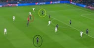 Akin to Di Maria, Cavani also is allowed to drift towards the centre and he plays to his strengths by trying to run in behind the defence and being available in dangerous areas inside the box. You would hardly find Cavani hugging the touchline like a typical winger does like the Neymars or the Douglas Costas of the modern era. However, Cavani’s high defensive work rate and his enduring engine have come in handy while he starts on the left flank as he is able to track the opposition’s full back/winger and offer defensive support.