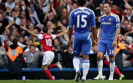 Following a disappointing start to their season, Arsenal claimed their biggest win of the season so far when they headed west to Chelsea who, themselves, were suffering a wobble. And wobble they did when Florent Malouda made a pass back to Chelsea captain John Terry who lost his footing before Robin van Persie, a hat-trick scorer on the day, stepped up to take advantage of some uncharacteristic sloppiness. With a goal just before the half-time and the full-time, the attendance of 41,801 was on their feet throughout the match.