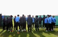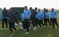 MANCHESTER, ENGLAND – DECEMBER 03: Manchester City players warm up during a training session prior to their UEFA Champions League group stage match against Borussia Dortmund, at Carrington Training Ground on December 3, 2012 in Manchester, England.