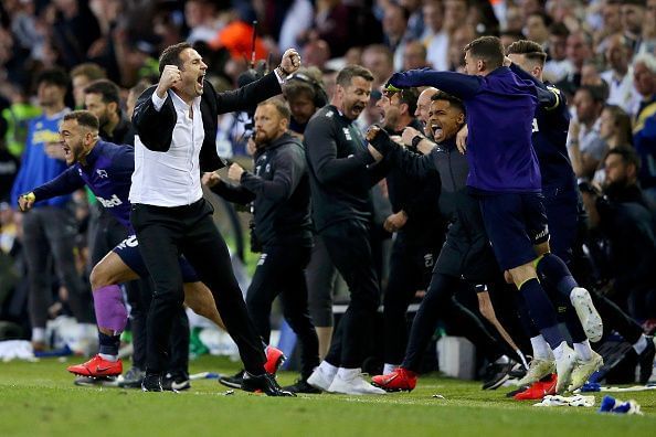 Three defeats to Leeds in Championship season and the first leg of the tie, Lampard amended his approach to achieve success. In that game, Derby set aside their dominant possession football and instead, sitting deeper and looking to hit Leeds on the counter-attack with direct passes forward.