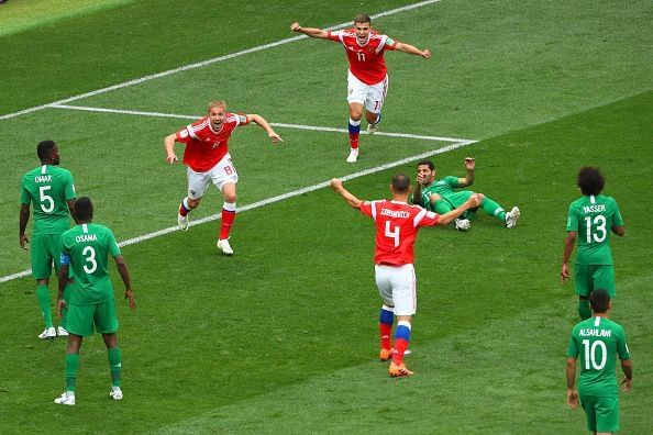 Russia opened the tournament against Saudi Arabia. After just 12 minutes, Yury Gazinsky put the hosts in front. Starman Alan Dzagoev came off with an injury shortly after to dampen the mood a bit but that didn't last long as his replacement Denis Cheryshev, who barely made the squad, scored just before halftime to make in 2-0.