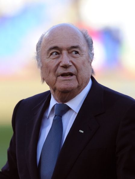 MARRAKECH, MOROCCO – DECEMBER 21: FIFA President Sepp Blatter looks on before the FIFA Club World Cup 3rd Place Match between Guangzhou Evergrande FC and Atletico Mineiro at the Marrakech Stadium on December 21, 2013 in Marrakech, Morocco. (Photo by Steve Bardens/Getty Images)