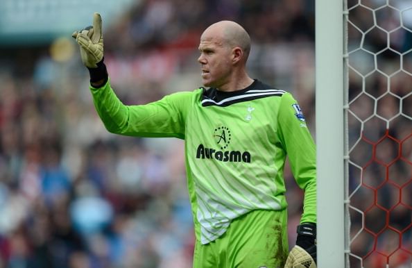 SUNDERLAND, ENGLAND – APRIL 07: Tottenham goalkeeper Brad Friedel gestures to his team-mates during the Barclay
