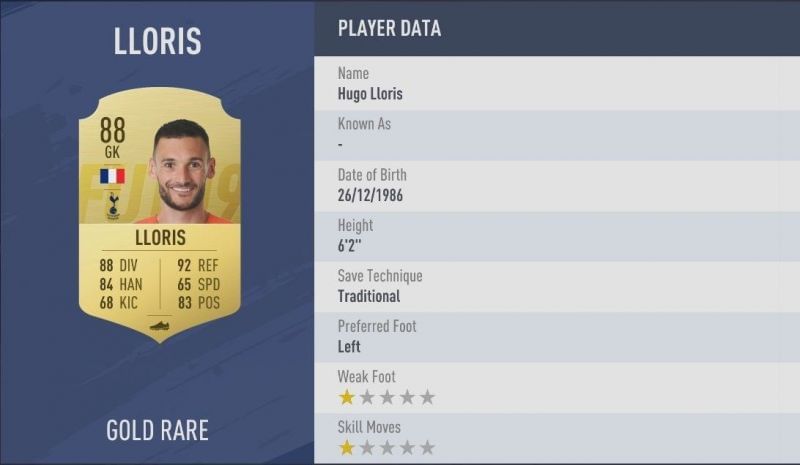He was downgraded from 89 to 88 for FIFA 19 which is quite understandable but that doesn't change the fact that he is one of the best keepers in the game. 88 Diving, 87 Handling and 90 Positioning basically make finesse shots useless against him. He won't let go of any balls as well. His only weakness is the 83 reflexes which will make him concede from shots within the box.