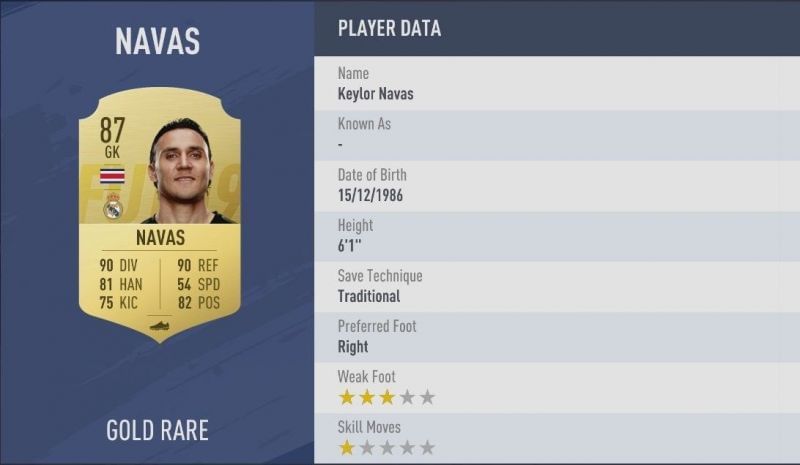 Navas received his breakthrough after the 2014 FIFA World Cup. As a result, his initial rating of 72 was bumped up to 81 in FIFA 14. He has increased every FIFA since then and his 87 in FIFA 19 is his highest till date.
