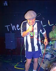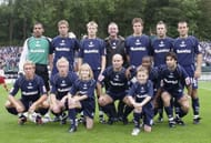 DJ and Brighton and Hove Albion fan Fatboy Slim (centre, back) launches his new album ‘Palookaville’ at Withdean Stadium in Brighton on October 2, 2004 in Brighton, England