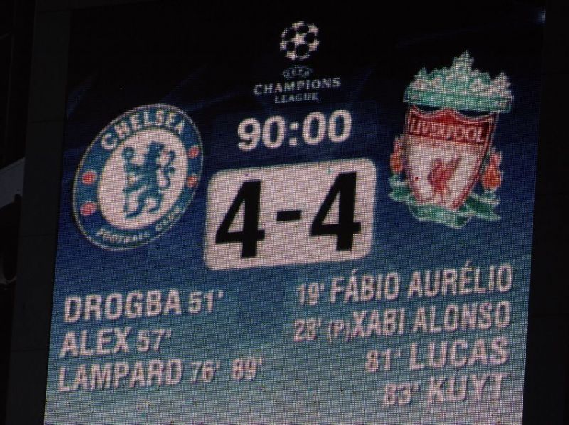 Liverpool, trailing 1-3 from the first leg, started strongly and took a 2-0 lead due to some scandalous errors by Petr Cech. Chelsea clawed back, as goals from Didier Drogba and Alex levelled the score. They scored again, as Lampard netted to put the tie beyond doubt. Or so it seemed.