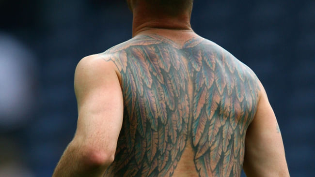 Although not the most famous footballer, Stephen Ireland has a pair of giant wings on his back. Currently playing for Stoke City, the Irish midfielder has a right sleeve filled with tattoos too.