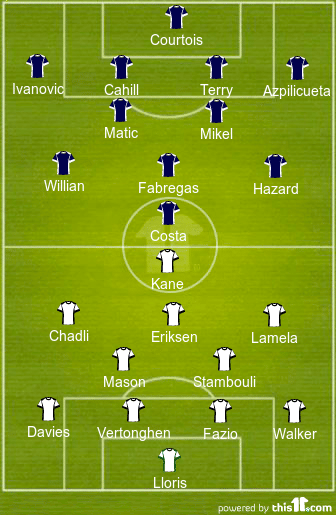 Harry Kane has been a real surprise performer this season for Spurs. His fine form has seen him preferred over the much more experienced duo of Roberto Soldado and Adebayor. The youngster has an impressive 5 goals to his name and will be looking to add to that tally against the Blues. It will be up to the impressive defensive partnership of Terry and Cahill to stop the enthusiastic and determined Kane from wreaking havoc in the Chelsea backline.