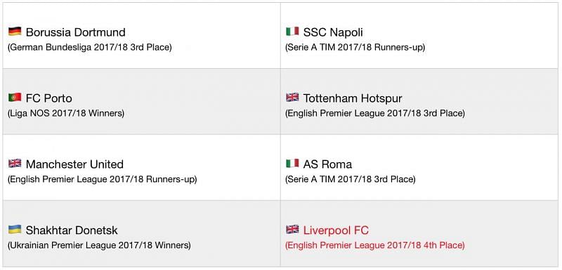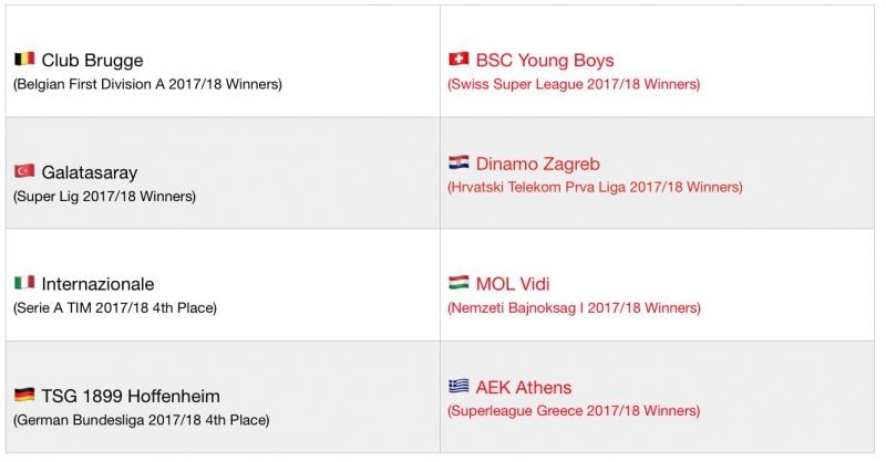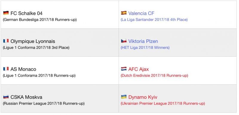 Note that there are only four teams that are confirmed in this pot. Valencia CF and Viktoria Plzen may join this pot based on UEFA's decision, and the other spots are expected to be occupied by the teams highlighted in red above.