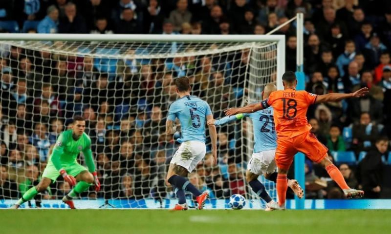 Fekir’s highlight of the game came just before halftime, in the 43rd minute. A goal which shouldn’t have been there in the first place. Fernandinho’s complacency cost City big time as Fekir easily bundled him over and won the ball. Fekir went straight into the attack dribbling away from David Silva. Silva wasn’t able to get a tackle, Laporte and Stones just backed off without an attempt to stop. Fekir, with the defense on their heels, shot with his left foot, from about 22 meters, outside the box. The ball beat the legs of Laporte and Stones and went just out of Ederson’s reach into the bottom left corner of the goal.