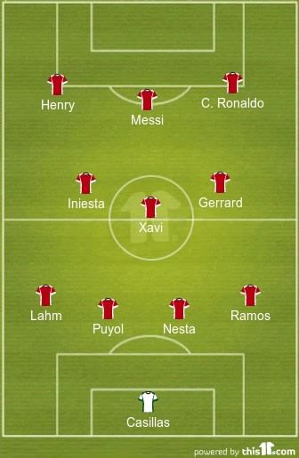 GK: Iker Casillas (Real Madrid, Porto and Spain)