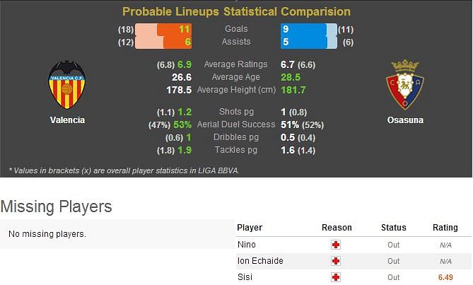 - Osasuna have been just as inconsistent as their hosts heading into Sunday’s game. However, with expectations much lower for the Pamplonan outfit, the team enter this game in a much better mood than Valencia who are in a state of crisis. This could prove telling come full time.