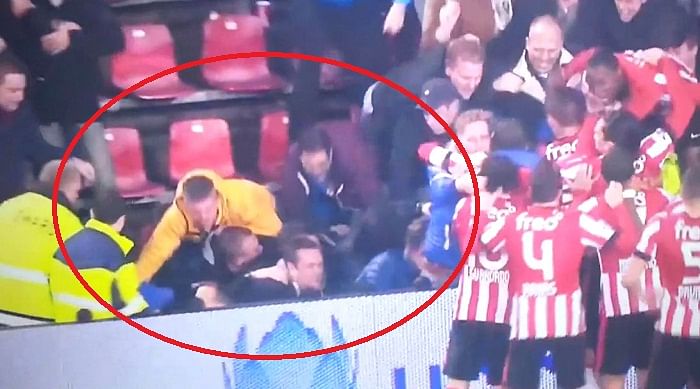 And when he scored his third goal, players ran to the touchline to celebrate with the fans. As more players came forward, the fans in the stand tried to push forward to get close to them and that was when the fence holding them back buckled under the pressure and collapsed.