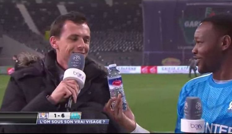 The 29-year-old was speaking to a reporter for a post-match interview when a water bottle was seen flying towards him, but Mandanda being the great keeper that he is, was successful in grabbing it with his fast reflexes.