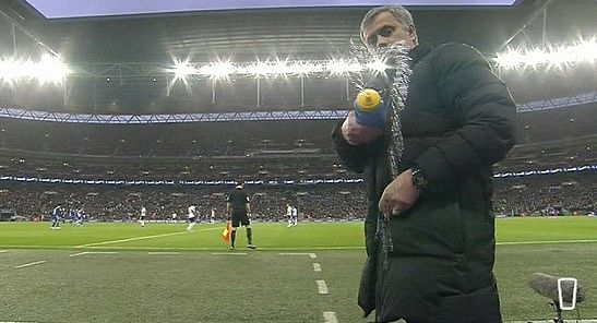The fact that his team was winning obviously helped ‘the Special One’s’ cause. The Portuguese shared a cheeky smile with a cameraman on the sidelines after squirting water at his camera.