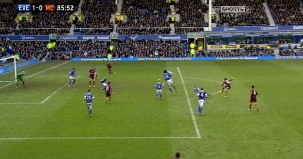 The incident came when Everton were leading only 1-0, and had been reduced to ten men following Steven Pienaar’s earlier dismissal. There is little doubt that a penalty could have really changed the game for the Citizens, who were finding it difficult to create chances against a stellar Everton back line. After the game, Roberto Mancini was apparently “too angry” to talk to the media.