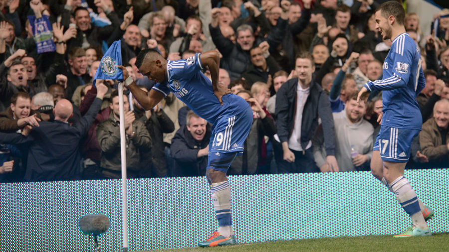 Eto’o, who was released by Chelsea after being out-of-contract following a season-long stint, raced towards the corner flag to celebrate in a mocking manner, holding his back and using the flag as a walking stick.